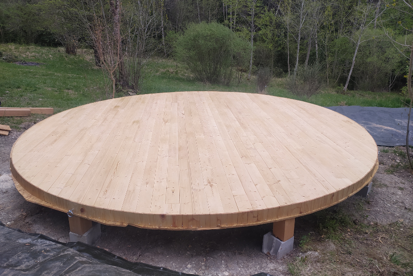 Réalisation d’une ossature sur mesure (5.68m de diamètre) pour y déposer une yourte.